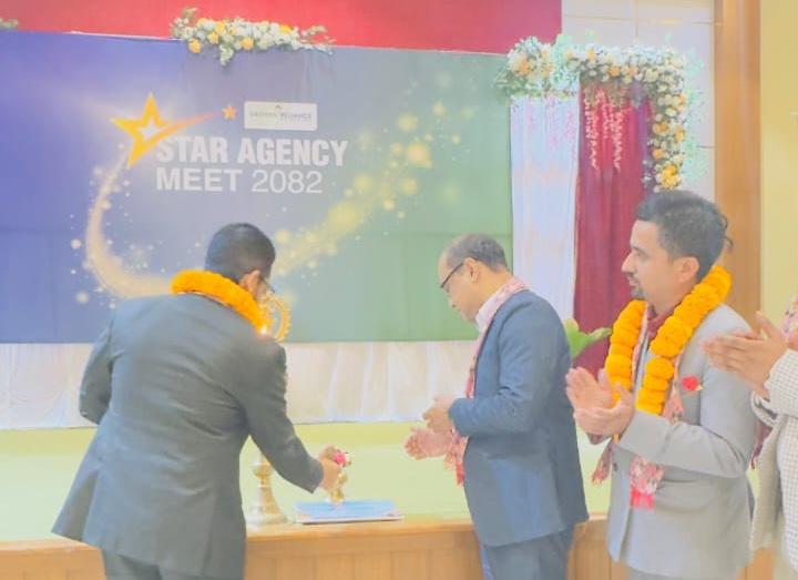 नेपालगन्ज, २३ कात्तिक । सानिमा रिलायन्स लाईफ इन्स्योरेन्सले नेपालगन्जमा ‘स्टार एजेन्सी मिट–२०८२ सम्मान गरेको छ । सानिमा रिलायन्स लाईफ इन्स्योरेन्सले नेपालगंज क्षेत्रिय कार्यालय अन्र्तगत शनिबार पौवा होटलमा सम्मान गरेको हो ।