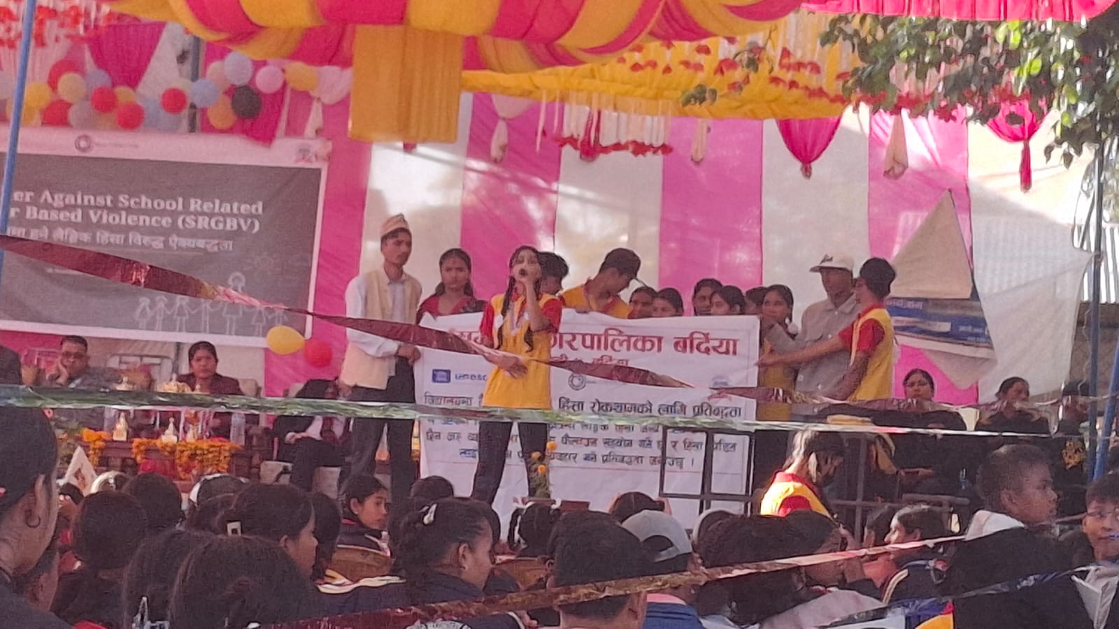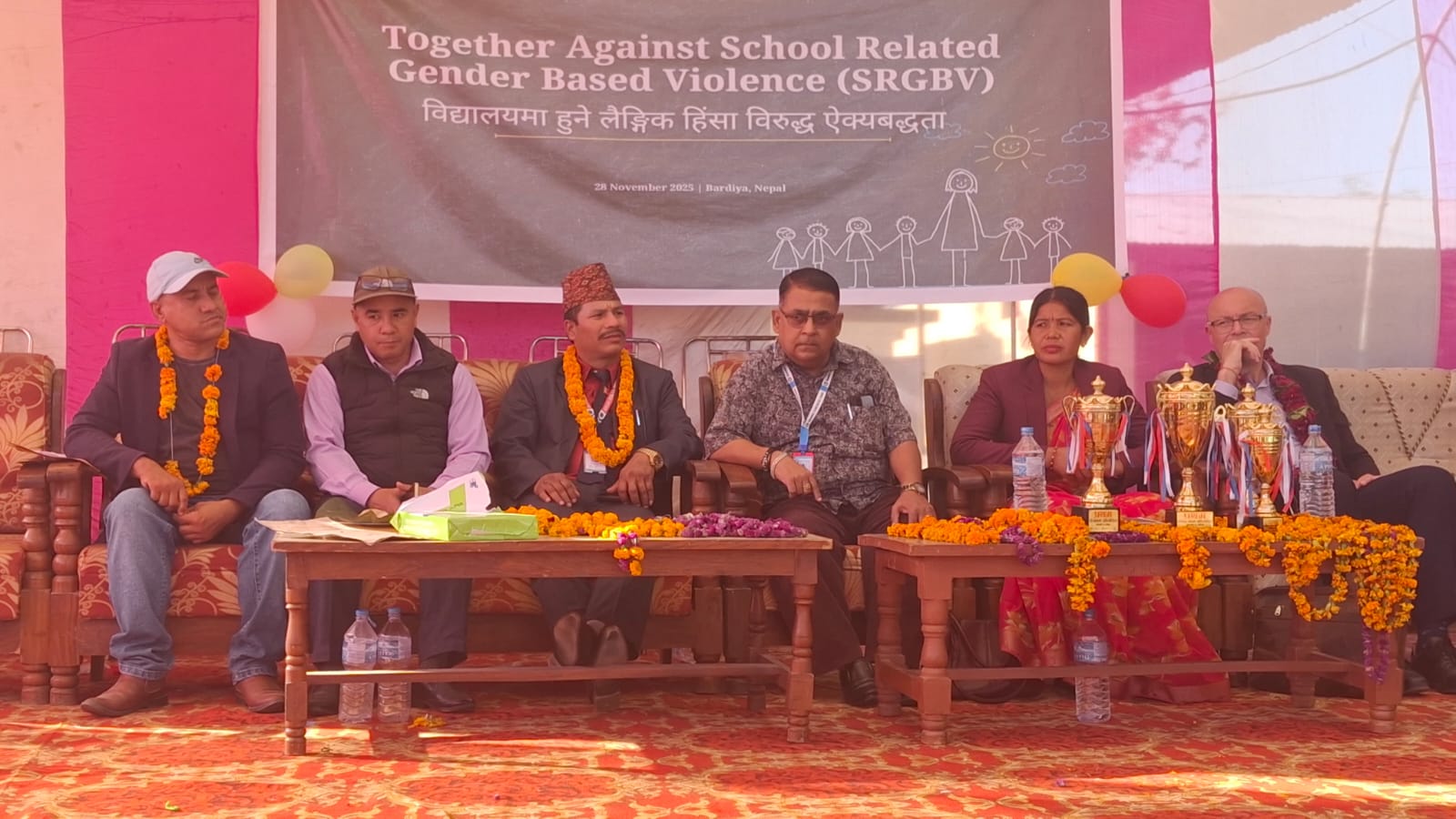 सो अवसरमा शिक्षा निर्देशनालयका मन प्रसाद रेग्मीले स्वागत मन्तव्य दिंदै बर्दिया जिल्लाको शैक्षिक अवस्थाबारे विस्तृत जानकारी प्रस्तुत गर्नुभयो । उहाँले सहकार्य र सामूहिक प्रयासमार्फत विद्यालयलाई लैङ्गिक हिंसामुक्त बनाउने दृष्टीकोणलाई थप मजबुत बनाउनु पर्नेमा जोड दिनुभयो ।