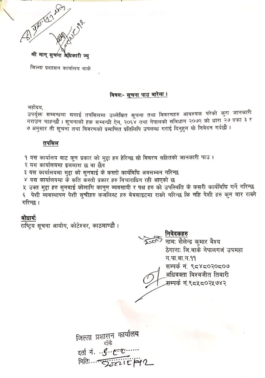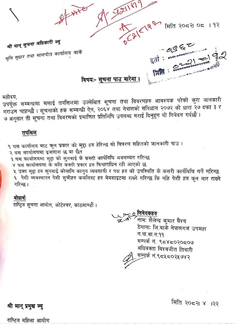 जिल्ला प्रशासन र भुमिसुधार तथा मालपोत कार्यालयसंग सूचना माग