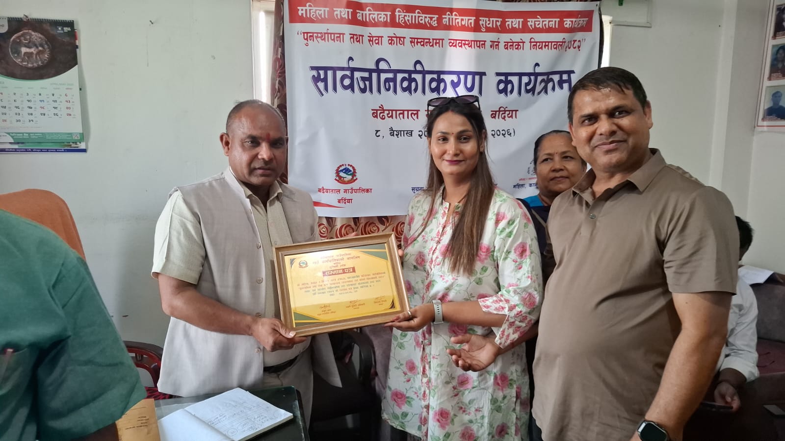 त्यस अवसरमा पालिकाको नीति बनाउनमा सहयोग गरेको भन्दै पालिकाले महिला कानून र विकास मंच र सूचना र मानव अधिकार अनुसन्धान केन्द्र संस्थालाई सम्मान पत्र प्रदान गरेको थियो । उक्त सम्मान पत्र संस्थाका सचिव अल्का मिश्रले ग्रहण गर्नुभएको थियो ।