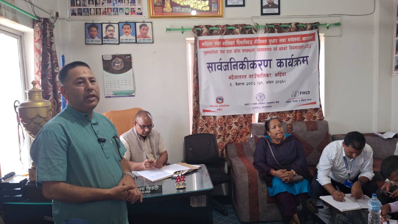 र्साजनिकीकरण कार्यक्रममा पालिका अध्यक्ष हिमालय त्रिपाठीले हाम्रो समाजमा लैङ्गिक हिंसाका घटनाहरु बढी घटेकाले अब कानून बनेकाले उक्त विषयलाई सम्बोधन गर्न सहज हुने भन्दै यसलाई तत्काल कार्यन्वयनमा ल्याउने प्रतिबद्धता गर्नुभयो । उहाँले महिला तथा बालिकाविरुद्ध हुने विभिन्न किसिमका हिंसालाई न्युनीकरण गर्न पालिकाले एउटा संयन्त्र निमार्ण गरि काम गर्ने बताउनुभयो ।